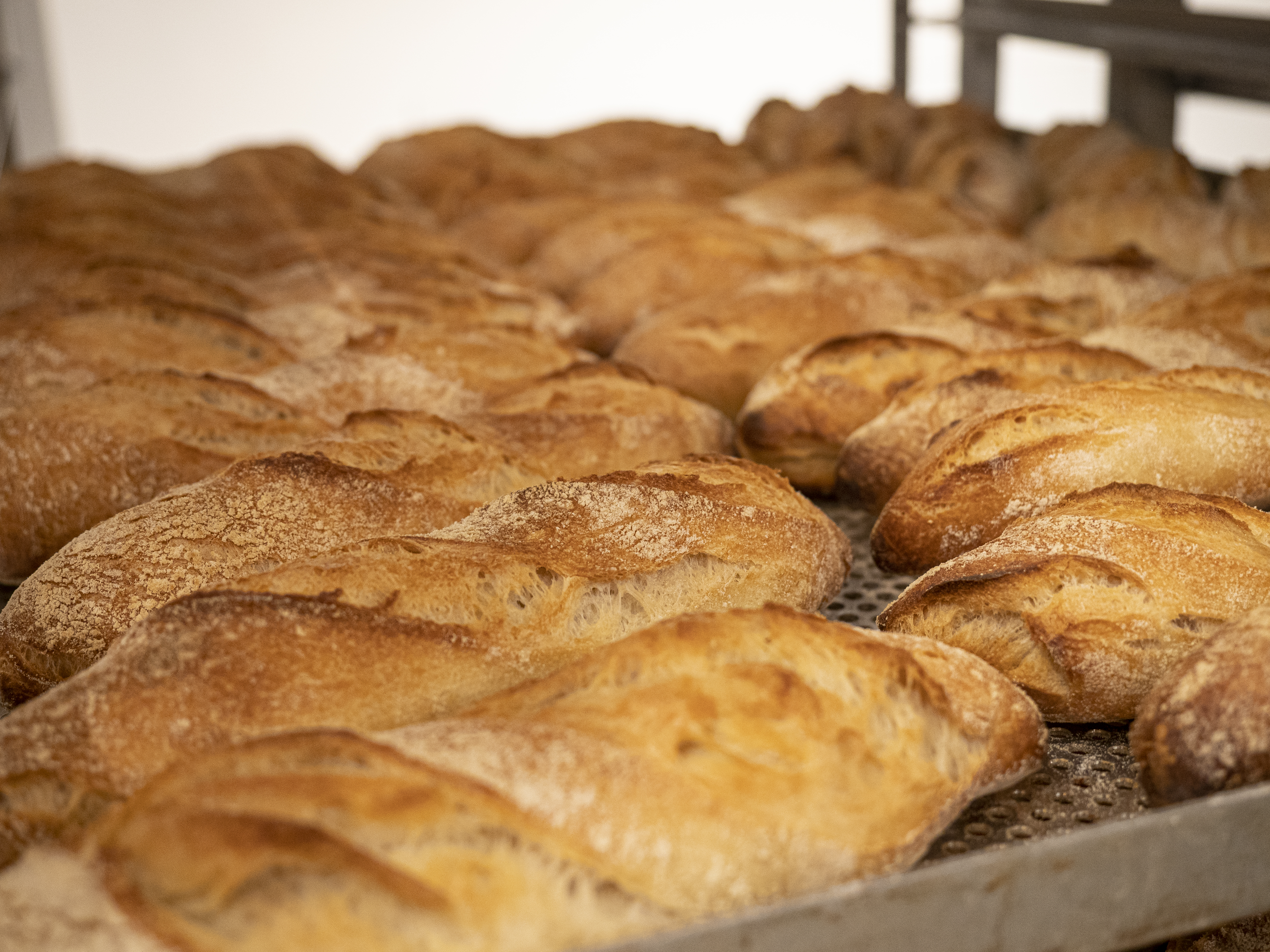 Handwerks-Kino live: Auf 44 m2 Fläche wird vor den Augen aller gemischt, geknetet, gerollt und gebacken. Das PAN.ATELIER ist mit allem ausgerüstet, was eine Backstube ausmacht. Täglich beginnt die Produktion gegen 9.30 Uhr, die ersten Brote werden mittags in den Ofen geschoben, die letzten des Tages vor 16 Uhr.